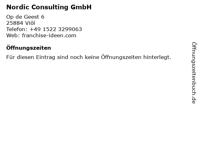 | Öffnungszeiten Nordic Consulting GmbH in Viöl anzeigen | |