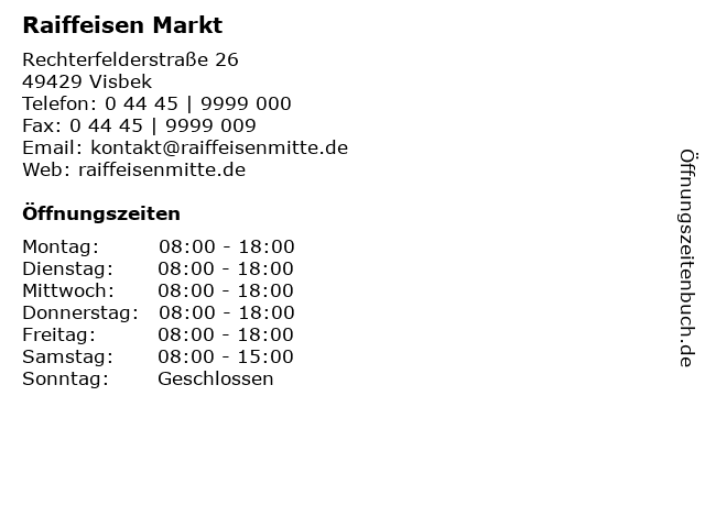 | Öffnungszeiten Raiffeisen Markt in Visbek anzeigen | |