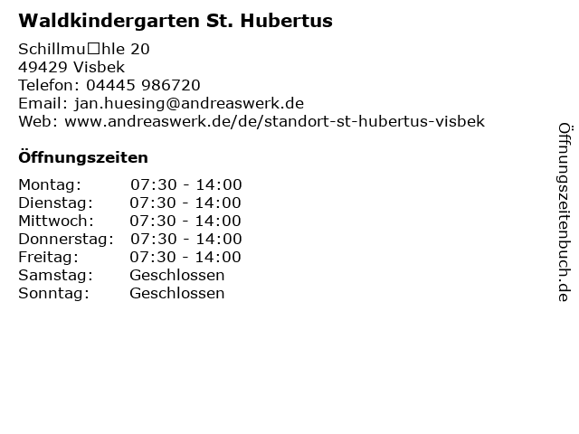 | Öffnungszeiten Waldkindergarten St. Hubertus in Visbek anzeigen | |