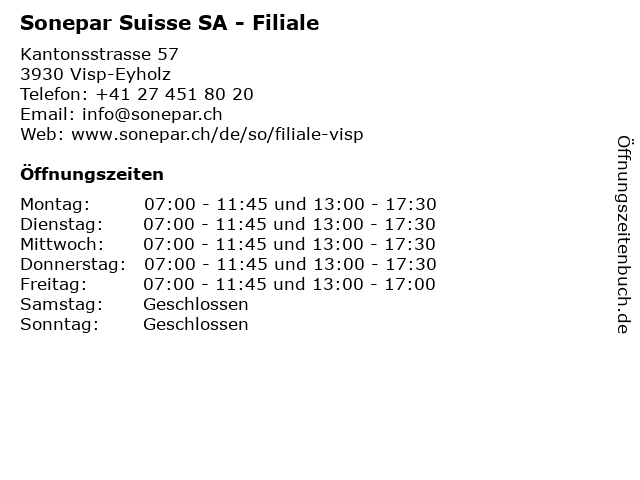 Sonepar Suisse SA - Filiale in Visp-Eyholz | Telefonnummer, Öffnungszeiten und Adresse