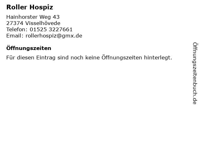 | Öffnungszeiten Roller Hospiz in Visselhövede anzeigen | |