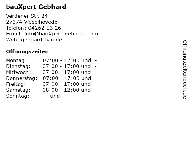 | Öffnungszeiten bauXpert Gebhard in Visselhövede anzeigen | |