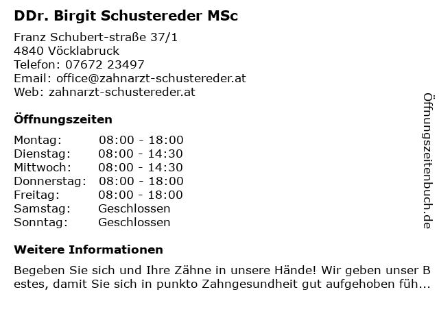 Branchen & Suchbegriffe zu DDr. Birgit Schustereder MSc:birgit, ddr., msc, schustereder |