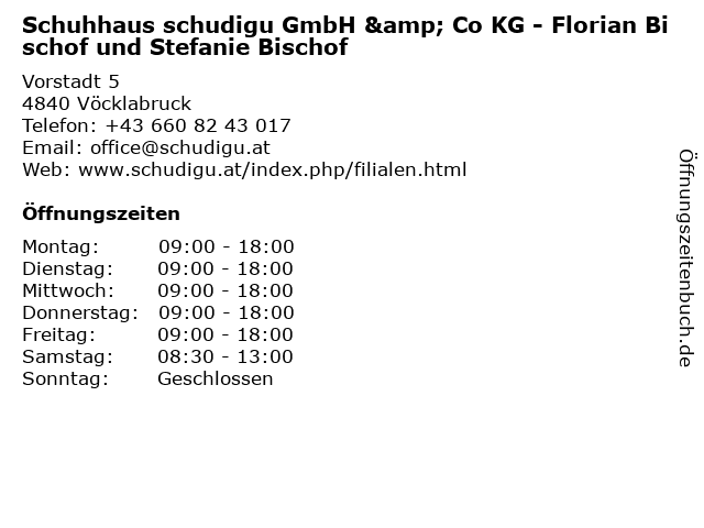 Branchen & Suchbegriffe zu Schuhhaus schudigu GmbH & Co KG - Florian Bischof und Stefanie Bischof:bischof, co, florian, florian bischof, schudigu, schuhe, schuhgeschäft, schuhhaus, stefanie, stefanie bischof |