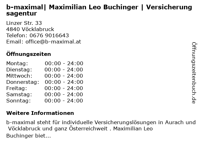 Branchen & Suchbegriffe zu b-maximal| Maximilian Leo Buchinger | Versicherungsagentur:buchinger, leo, maximal|, maximilian, versicherungsagentur |