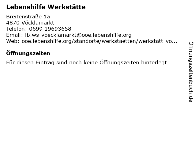 | Öffnungszeiten Lebenshilfe Werkstätte in Vöcklamarkt anzeigen | |