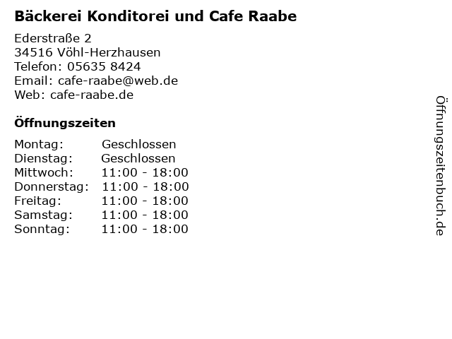 Öffnungszeiten Bäckerei Konditorei und Cafe Raabe