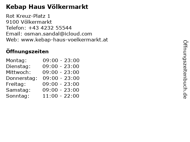 | Öffnungszeiten Kebap Haus Völkermarkt in Völkermarkt anzeigen | |