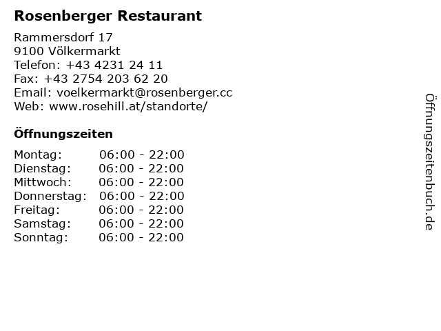 | Öffnungszeiten Rosenberger Restaurant in Völkermarkt anzeigen | |