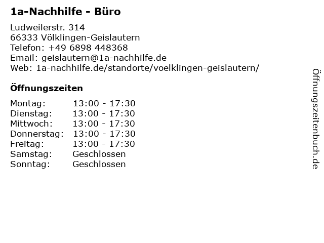 Branchen & Suchbegriffe zu 1a-Nachhilfe - Büro:1a, berufsschulen, bildung, biologie, büro, chemie, deutsch, englisch, erziehung, französisch, latein, nachhilfe, schulen |