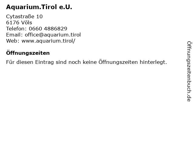 | Öffnungszeiten Aquarium.Tirol e.U. in Völs anzeigen | |
