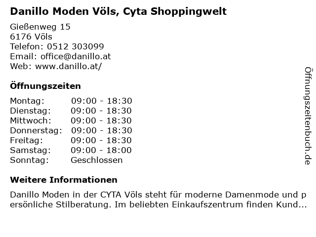Branchen & Suchbegriffe zu Danillo Moden Völs, Cyta Shoppingwelt:cyta, danillo, moden, shoppingwelt, völs |