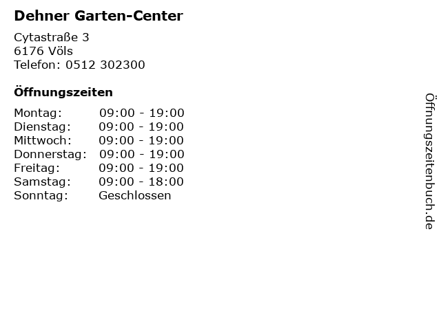 | Öffnungszeiten Dehner Garten-Center in Völs anzeigen | |