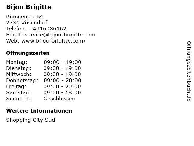 | Öffnungszeiten Bijou Brigitte in Vösendorf anzeigen | |