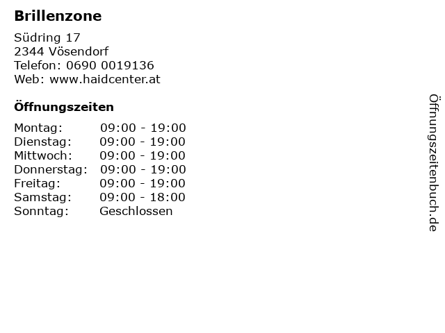 | Öffnungszeiten Brillenzone in Vösendorf anzeigen | |