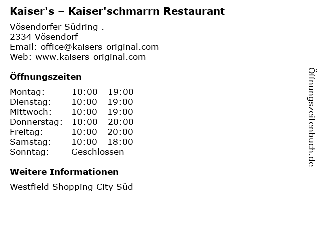 Öffnungszeiten Kaiser's – Kaiser'schmarrn Restaurant in Vösendorf anzeigen