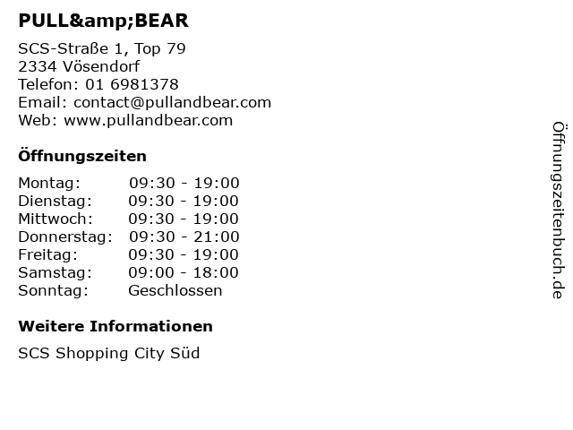 | Öffnungszeiten PULL&BEAR in Vösendorf anzeigen | |