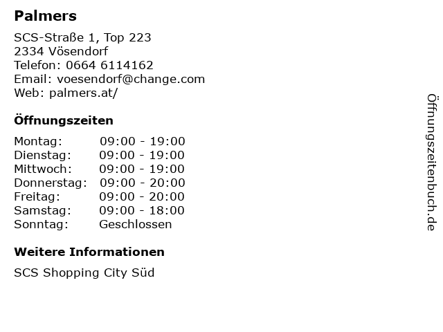 | Öffnungszeiten Palmers in Vösendorf anzeigen | |