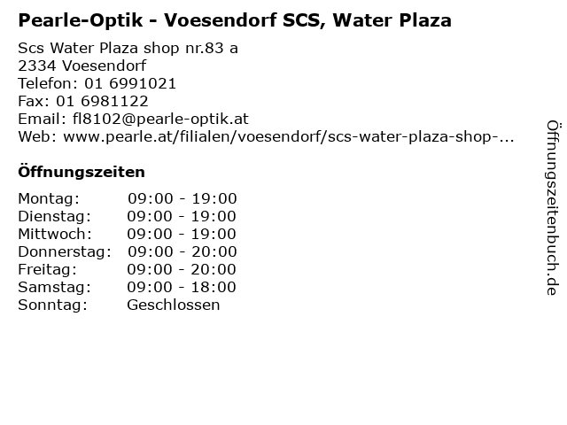Öffnungszeiten Pearle-Optik - Voesendorf SCS, Water Plaza