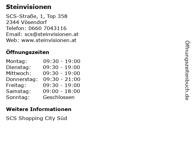 | Öffnungszeiten Steinvisionen in Vösendorf anzeigen | |