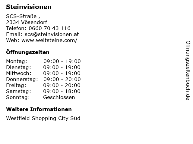 | Öffnungszeiten Steinvisionen in Vösendorf anzeigen | |