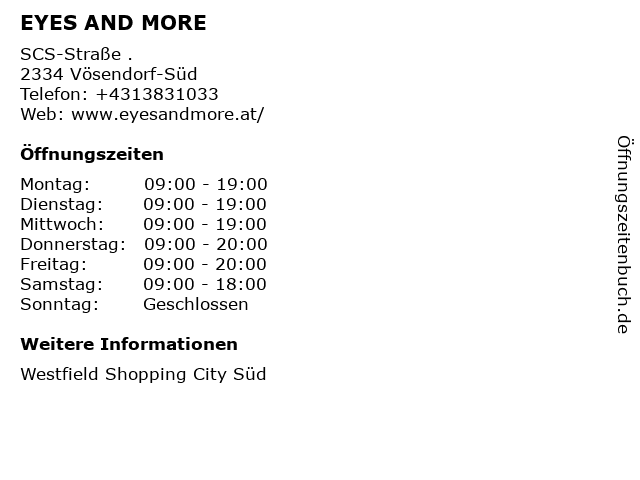 | Öffnungszeiten EYES AND MORE in Vösendorf-Süd anzeigen | |
