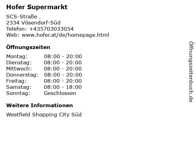 | Öffnungszeiten Hofer Supermarkt in Vösendorf-Süd anzeigen | |