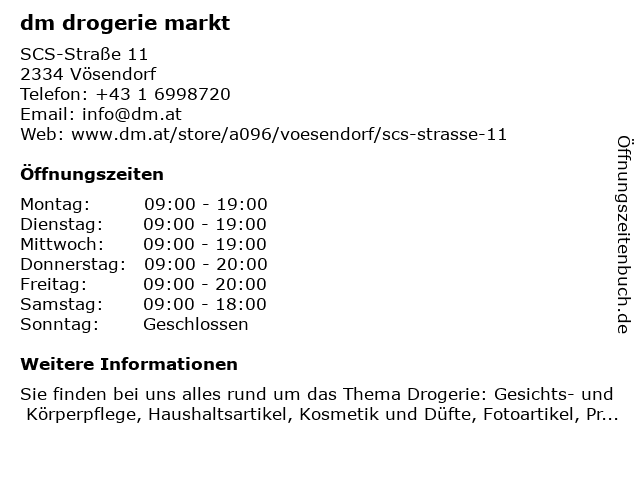 Öffnungszeiten dm drogerie markt in Vösendorf anzeigen | |