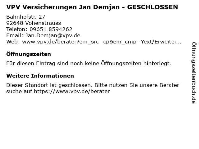 | VPV Versicherungen Jan Demjan - GESCHLOSSEN anrufen | |