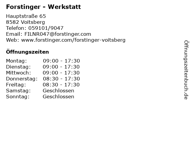 | Öffnungszeiten Forstinger - Werkstatt in Voitsberg anzeigen | |