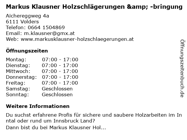 Branchen & Suchbegriffe zu Markus Klausner Holzschlägerungen & -bringung:bringung, holzschlägerungen, klausner, markus |