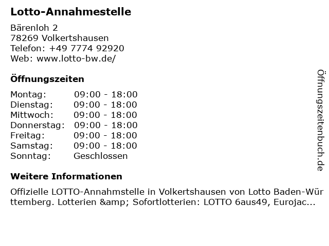 | Öffnungszeiten Lotto-Annahmestelle in Volkertshausen anzeigen | |