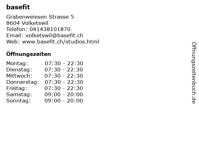 | Öffnungszeiten basefit in Volketswil anzeigen | |