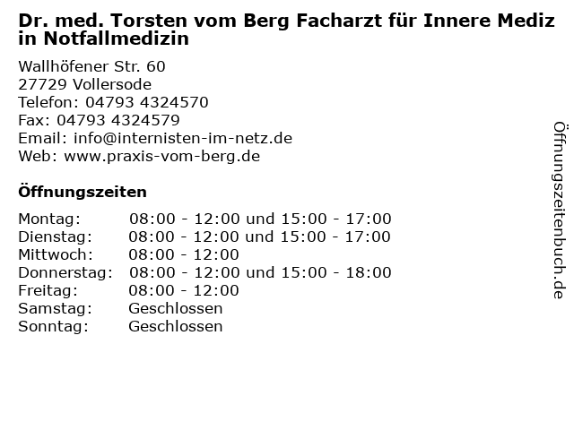 Branchen & Suchbegriffe zu Dr. med. Torsten vom Berg Facharzt für Innere Medizin Notfallmedizin:berg, dr., facharzt, innere, med., medizin, notfallmedizin, sportmedizin, torsten, vom |