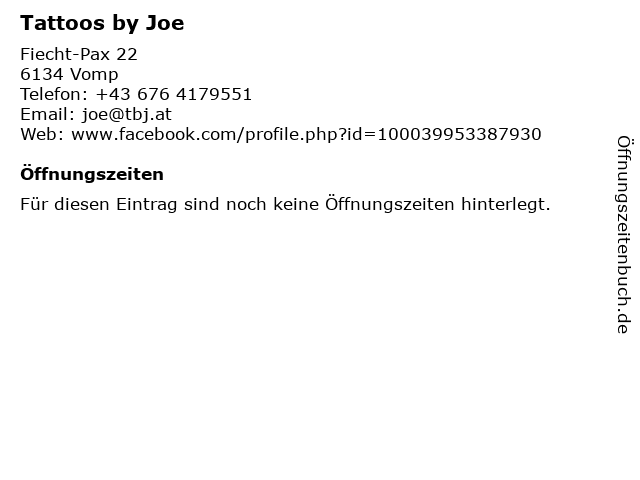 | Öffnungszeiten Tattoos by Joe in Vomp anzeigen | |