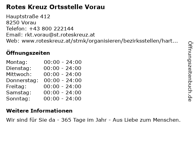 | Öffnungszeiten Rotes Kreuz Ortsstelle Vorau in Vorau anzeigen | |