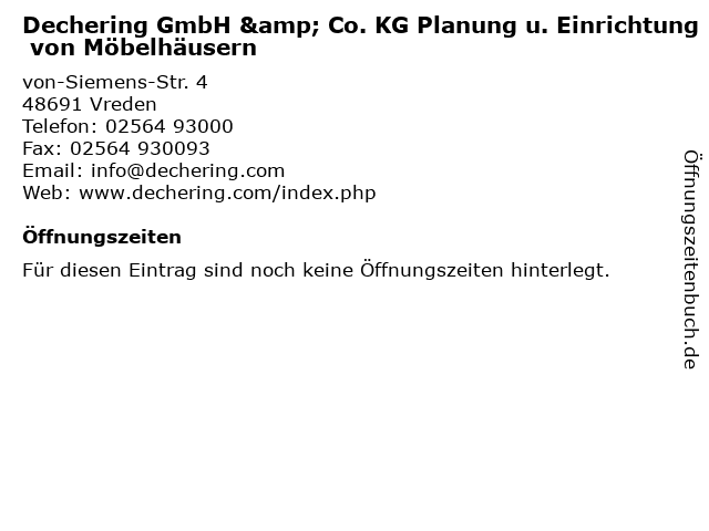 | Dechering GmbH & Co. KG Planung u. Einrichtung von Möbelhäusern anrufen | |