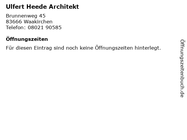 | Öffnungszeiten Ulfert Heede Architekt in Waakirchen anzeigen | |