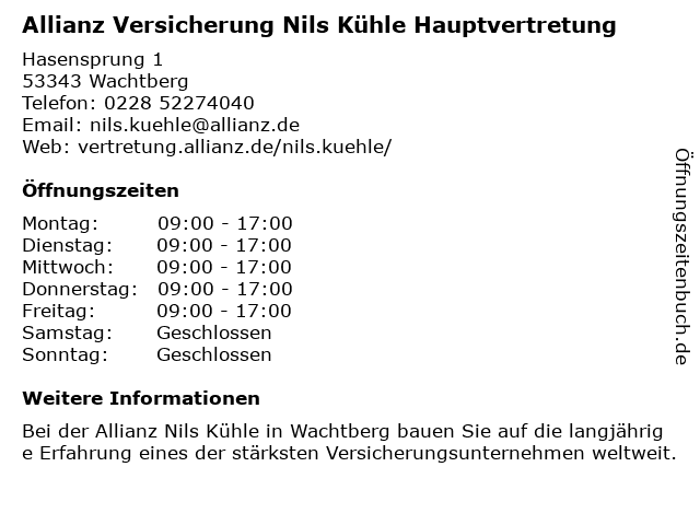 1 Allianz Versicherung Nils Kühle Hauptvertretung (Entfernung: 13,14 km) Telemannstraße 1, 53359 Rheinbach 3 Allianz Versicherung Markus Georg Graf Hauptvertretung (Entfernung: 5,64 km) Hauptstraße 438, 53639 Königswinter 4 Allianz Versicherung Peter Lindlahr Hauptvertretung (Entfernung: 6,43 km) Fritz-schäffer-straße 1, 53113 Bonn 6 Allianz Versicherung Christopher Senk Hauptvertretung (Entfernung: 7,57 km) Bahnhofstraße 16 a, 53604 Bad Honnef |