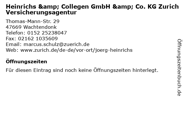 | Heinrichs & Collegen GmbH & Co. KG Zurich Versicherungsagentur anrufen | |