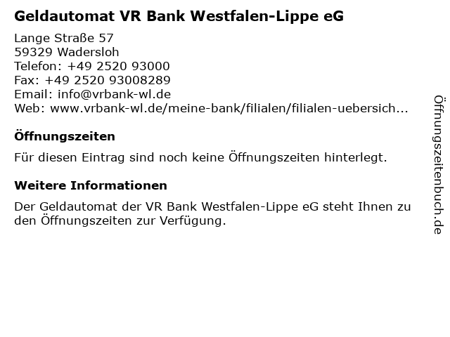 | Geldautomat VR Bank Westfalen-Lippe eG anrufen | |