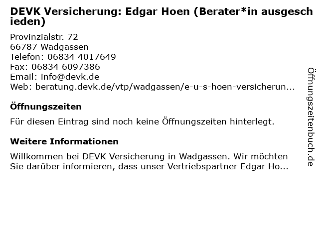 | DEVK Versicherung: Edgar Hoen (Berater*in ausgeschieden) anrufen | |
