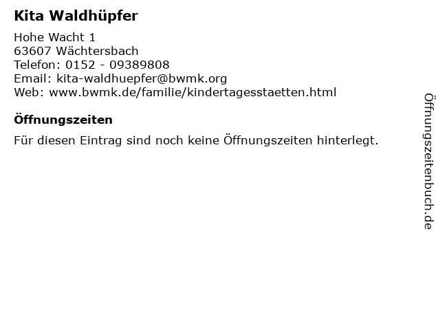 | Öffnungszeiten Kita Waldhüpfer in Wächtersbach anzeigen | |
