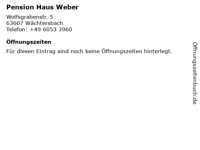 | Öffnungszeiten Pension Haus Weber in Wächtersbach anzeigen | |
