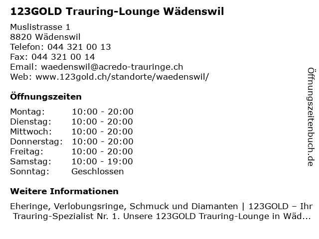 Öffnungszeiten 123GOLD Trauring-Lounge Wädenswil
