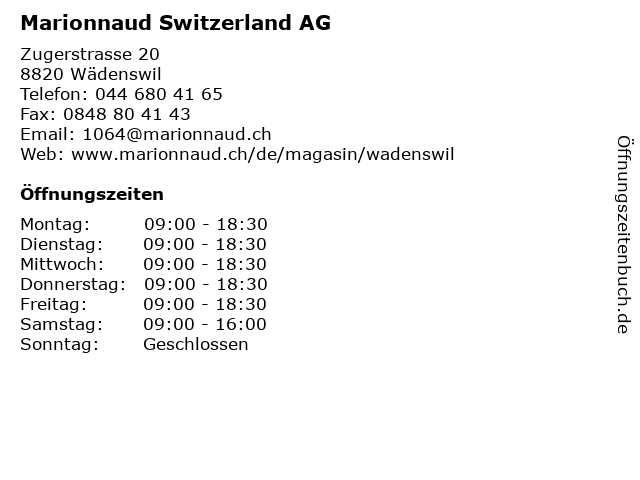 | Öffnungszeiten Marionnaud Switzerland AG in Wädenswil anzeigen | |
