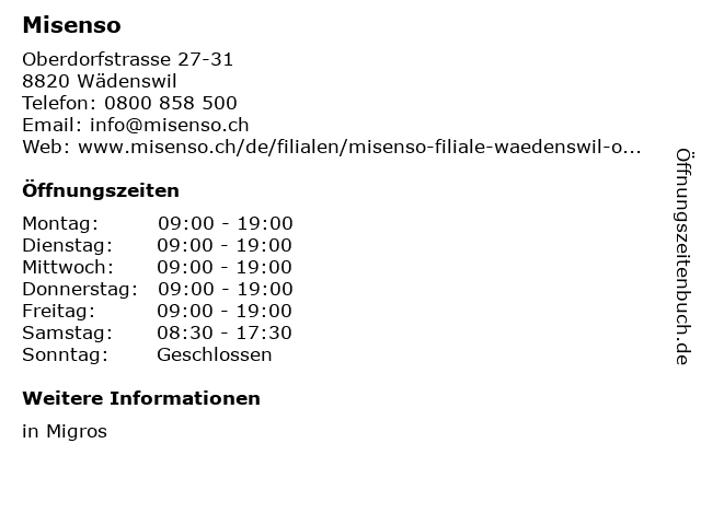| Öffnungszeiten Misenso in Wädenswil anzeigen | |