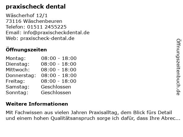 Öffnungszeiten praxischeck dental in Wäschenbeuren anzeigen | |