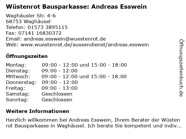 Branchen & Suchbegriffe zu Wüstenrot Bausparkasse: Andreas Esswein:andreas, bausparkasse, esswein, wüstenrot |