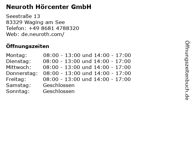 2 Neuroth - Hörgeräte und Gehörschutz (Entfernung: 25,72 km) Innsbrucker Bundesstraße 35, 5020 Salzburg 6 Neuroth - Hörgeräte und Gehörschutz (Entfernung: 36,50 km) Hauptstraße 21, 5202 Neumarkt am Wallersee |